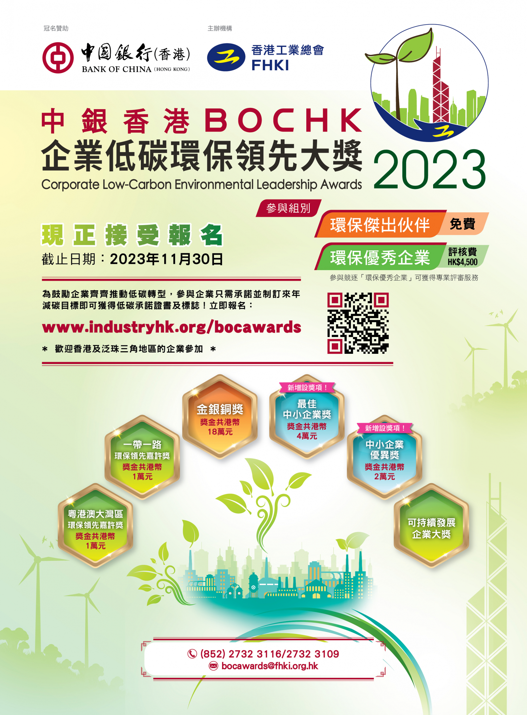 【Apply Now】BOCHK Corporate Low-Carbon Environmental Leadership Awards 2023